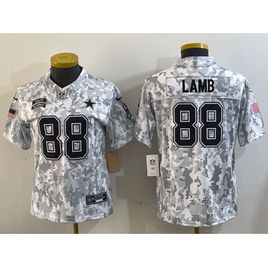 >Women's Dallas Cowboys #88 CeeDee Lamb 2024 FUSE Arctic Camo Salute to Service Limited Stitched Jersey