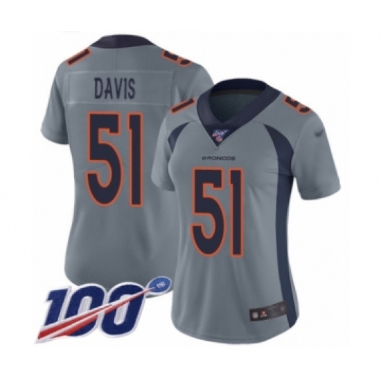 >Women's Denver Broncos #51 Todd Davis Limited Silver Inverted Legend 100th Season Football Jersey