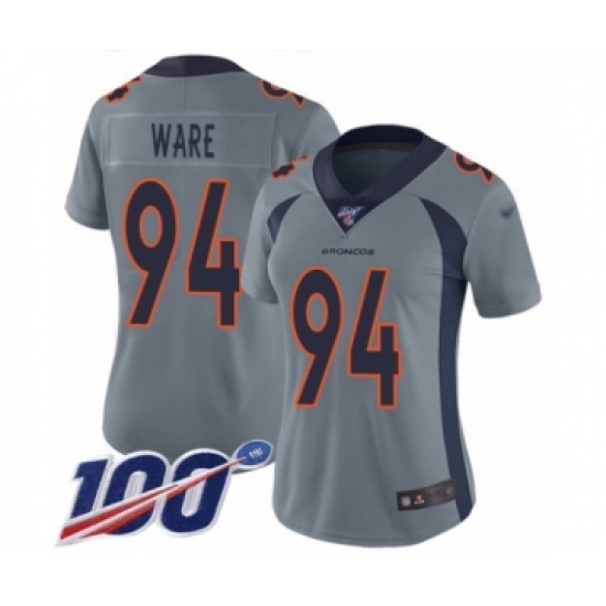 Women's Denver Broncos #94 DeMarcus Ware Limited Silver Inverted Legend 100th Season Football Jersey