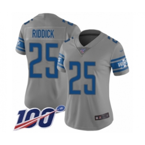 Women's Detroit Lions #25 Theo Riddick Limited Gray Inverted Legend 100th Season Football Jersey