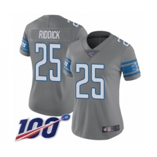 >Women's Detroit Lions #25 Theo Riddick Limited Steel Rush Vapor Untouchable 100th Season Football Jersey