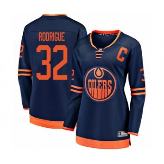 >Women's Edmonton Oilers #32 Olivier Rodrigue Authentic Navy Blue Alternate Fanatics Branded Breakaway Hockey Jersey