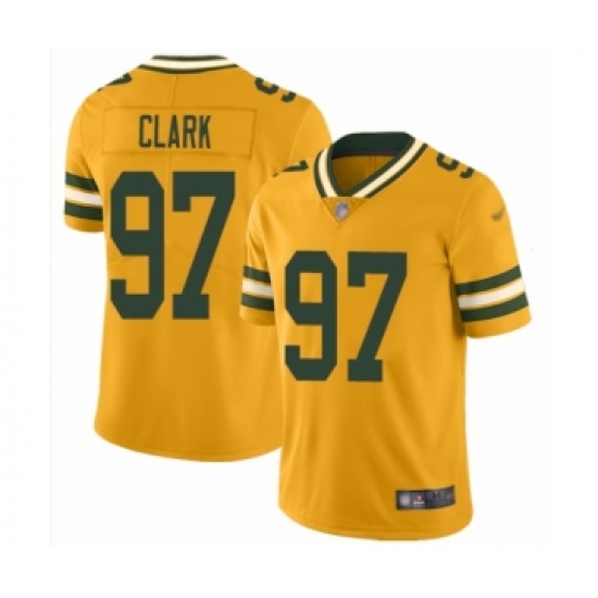 >Women's Green Bay Packers #97 Kenny Clark Limited Gold Inverted Legend Football Jersey