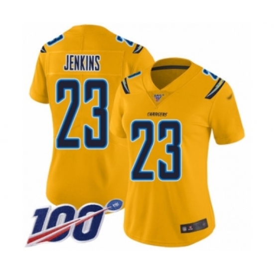>Women's Los Angeles Chargers #23 Rayshawn Jenkins Limited Gold Inverted Legend 100th Season Football Jersey
