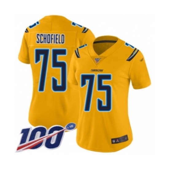 >Women's Los Angeles Chargers #75 Michael Schofield Limited Gold Inverted Legend 100th Season Football Jersey