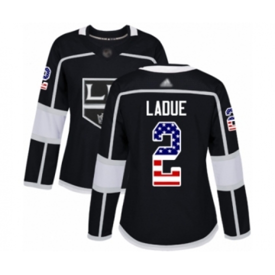 Women's Los Angeles Kings #2 Paul LaDue Authentic Black USA Flag Fashion Hockey Jersey