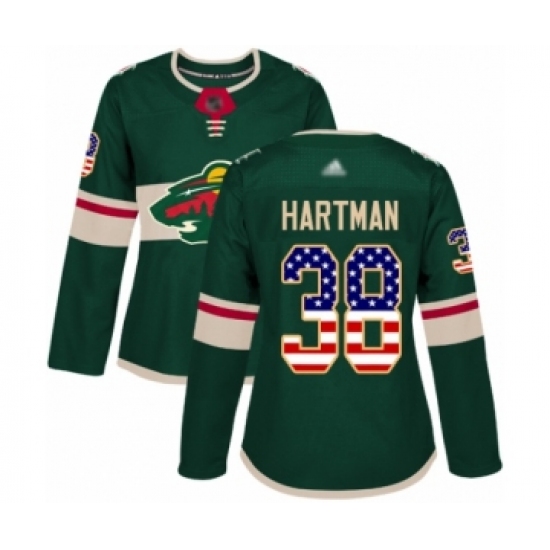 Women's Minnesota Wild #38 Ryan Hartman Authentic Green USA Flag Fashion Hockey Jersey