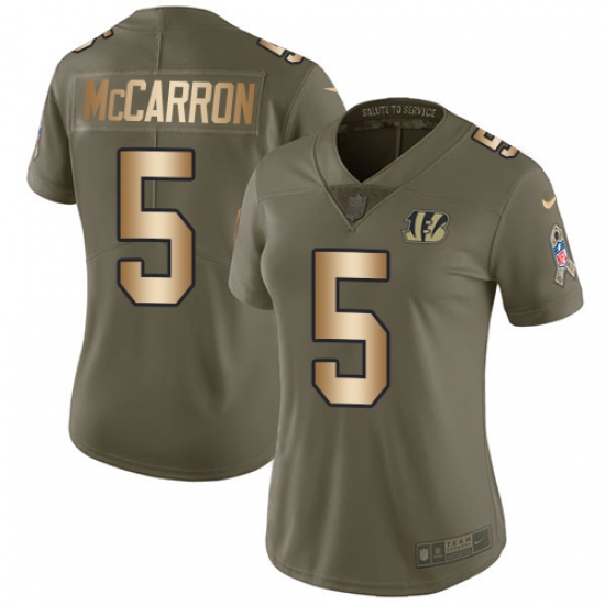 Home>NFL>Cincinnati Bengals>AJ McCarron>Women's Nike Cincinnati Bengals #5 AJ McCarron Limited Olive/Gold 2017 Salute to Service NFL Jersey