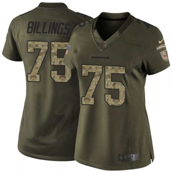 Home>NFL>Cincinnati Bengals>Andrew Billings>Women's Nike Cincinnati Bengals #75 Andrew Billings Elite Green Salute to Service NFL Jersey