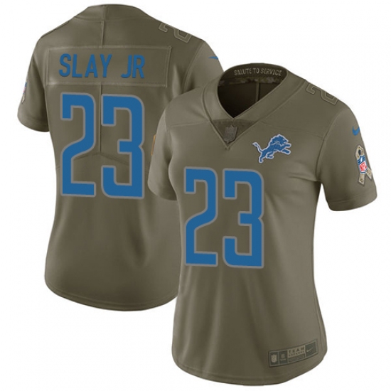 >Women's Nike Detroit Lions #23 Darius Slay Jr Limited Olive 2017 Salute to Service NFL Jersey