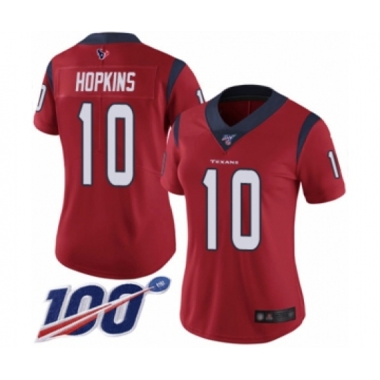 >Women's Nike Houston Texans #10 DeAndre Hopkins Red Alternate Vapor Untouchable Limited Player 100th Season NFL Jersey