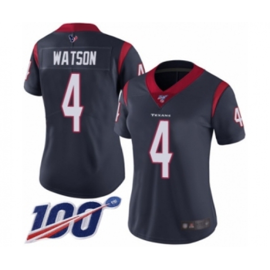 Women's Nike Houston Texans #4 Deshaun Watson Navy Blue Team Color Vapor Untouchable Limited Player 100th Season NFL Jersey