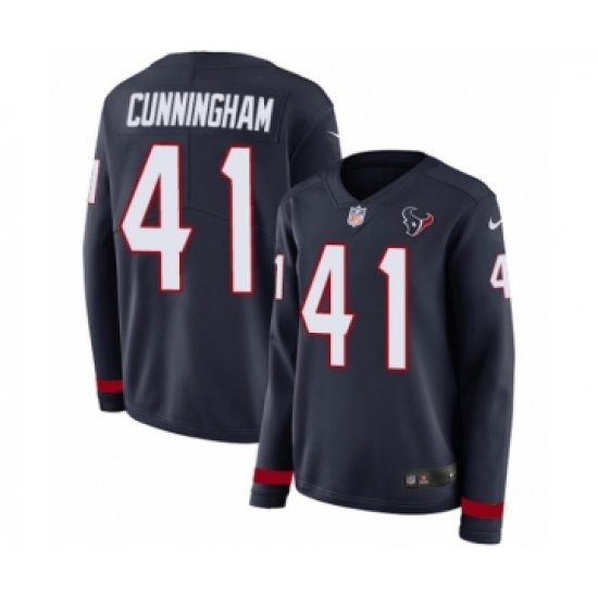 >Women's Nike Houston Texans #41 Zach Cunningham Limited Navy Blue Therma Long Sleeve NFL Jersey