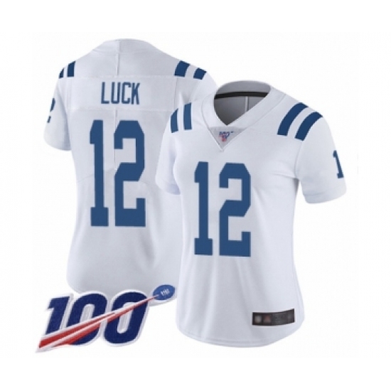 Women's Nike Indianapolis Colts #12 Andrew Luck White Vapor Untouchable Limited Player 100th Season NFL Jersey