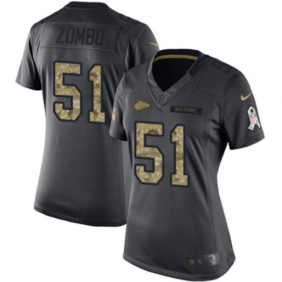 Home>NFL>Kansas City Chiefs>Frank Zombo>Women's Nike Kansas City Chiefs #51 Frank Zombo Limited Black 2016 Salute to Service NFL Jersey