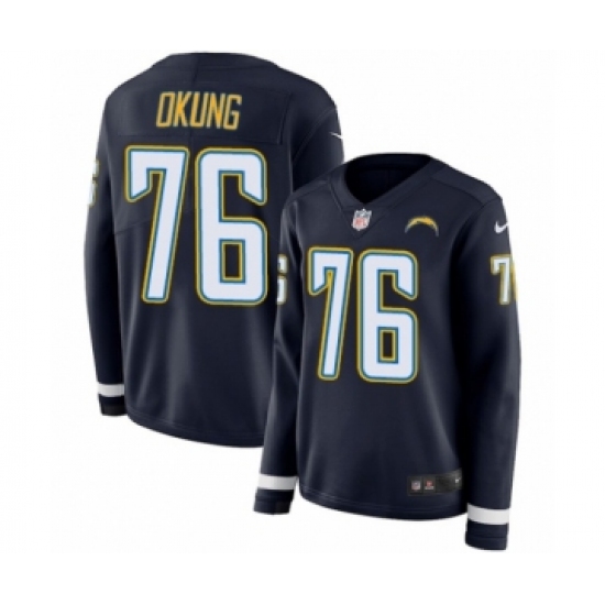 Women's Nike Los Angeles Chargers #76 Russell Okung Limited Navy Blue Therma Long Sleeve NFL Jersey