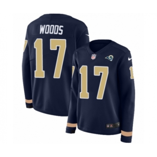 >Women's Nike Los Angeles Rams #17 Robert Woods Limited Navy Blue Therma Long Sleeve NFL Jersey