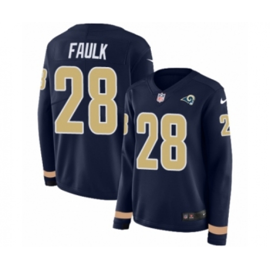 Women's Nike Los Angeles Rams #28 Marshall Faulk Limited Navy Blue Therma Long Sleeve NFL Jersey
