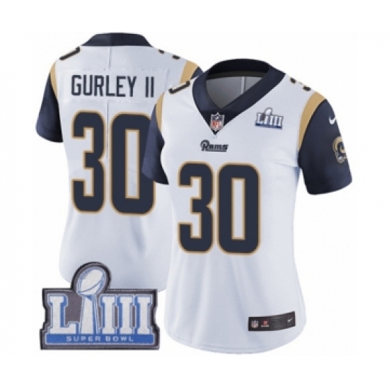 Women's Nike Los Angeles Rams #30 Todd Gurley White Vapor Untouchable Limited Player Super Bowl LIII Bound NFL Jersey