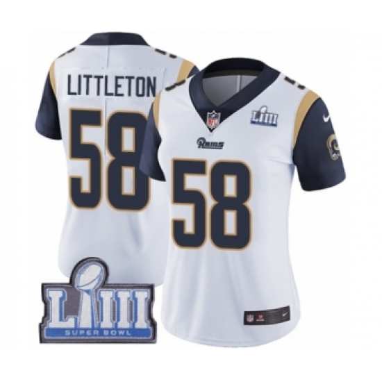 >Women's Nike Los Angeles Rams #58 Cory Littleton White Vapor Untouchable Limited Player Super Bowl LIII Bound NFL Jersey