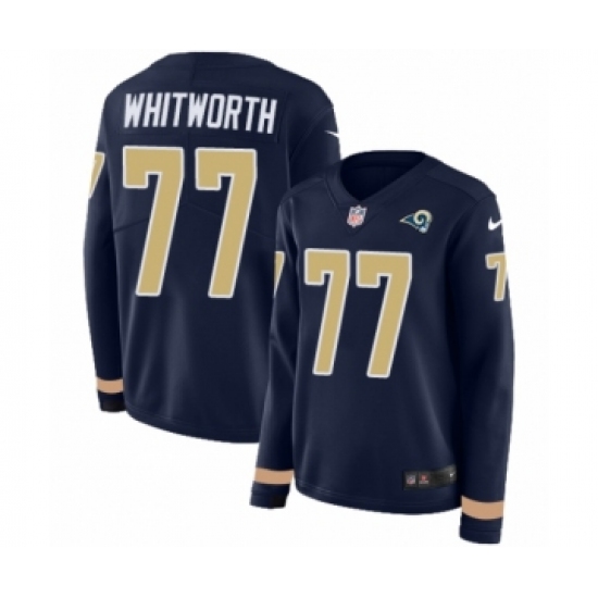 Women's Nike Los Angeles Rams #77 Andrew Whitworth Limited Navy Blue Therma Long Sleeve NFL Jersey