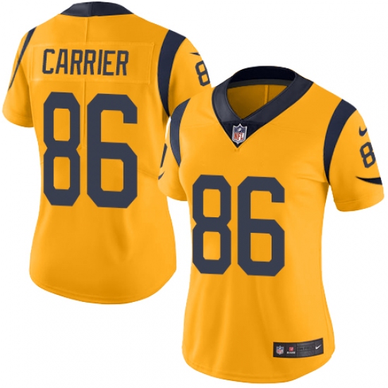 Home>NFL>Los Angeles Rams>Derek Carrier>Women's Nike Los Angeles Rams #86 Derek Carrier Limited Gold Rush Vapor Untouchable NFL Jersey
