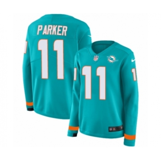 Women's Nike Miami Dolphins #11 DeVante Parker Limited Aqua Therma Long Sleeve NFL Jersey