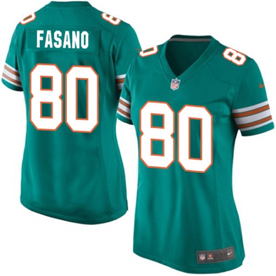 Home>NFL>Miami Dolphins>Anthony Fasano>Women's Nike Miami Dolphins #80 Anthony Fasano Game Aqua Green Alternate NFL Jersey
