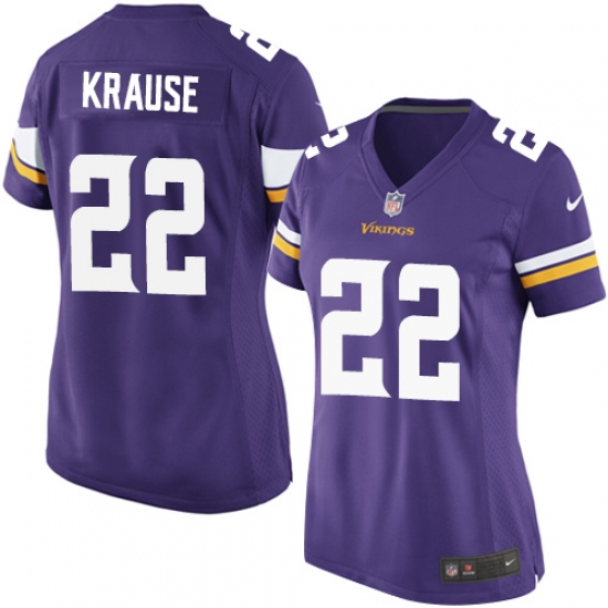 Home>NFL>Minnesota Vikings>Paul Krause>Women's Nike Minnesota Vikings #22 Paul Krause Game Purple Team Color NFL Jersey