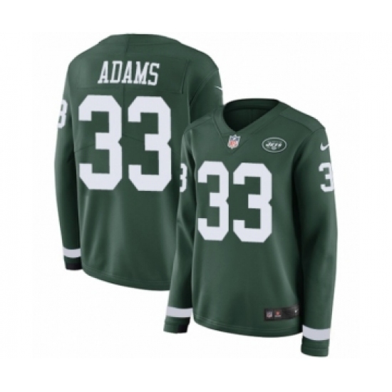 >Women's Nike New York Jets #33 Jamal Adams Limited Green Therma Long Sleeve NFL Jersey