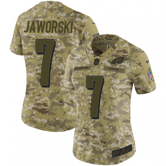 >Women's Nike Philadelphia Eagles #7 Ron Jaworski Limited Camo 2018 Salute to Service NFL Jersey