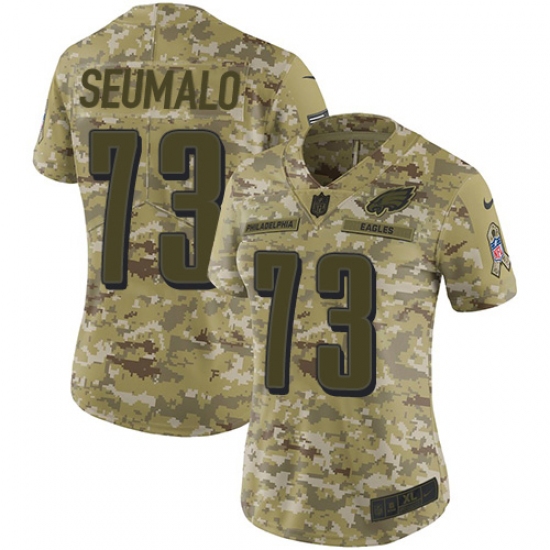 >Women's Nike Philadelphia Eagles #73 Isaac Seumalo Limited Camo 2018 Salute to Service NFL Jersey
