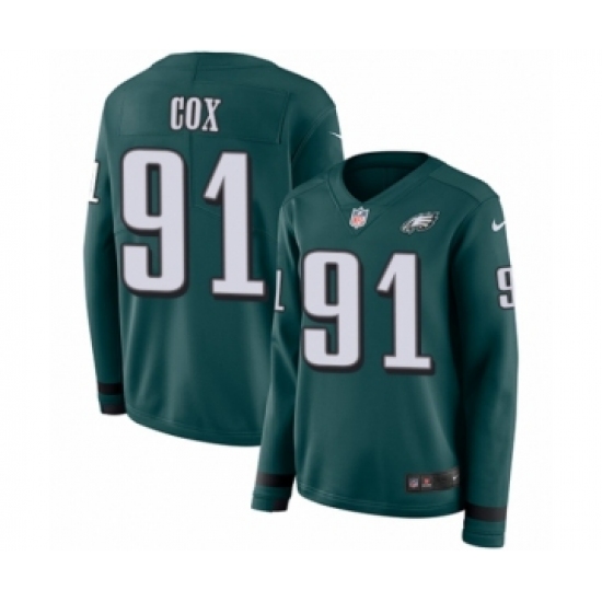 Women's Nike Philadelphia Eagles #91 Fletcher Cox Limited Green Therma Long Sleeve NFL Jersey