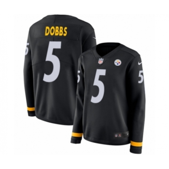 >Women's Nike Pittsburgh Steelers #5 Joshua Dobbs Limited Black Therma Long Sleeve NFL Jersey