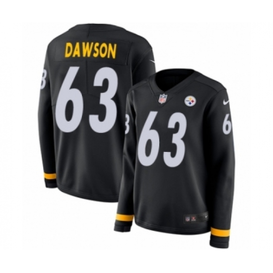 >Women's Nike Pittsburgh Steelers #63 Dermontti Dawson Limited Black Therma Long Sleeve NFL Jersey