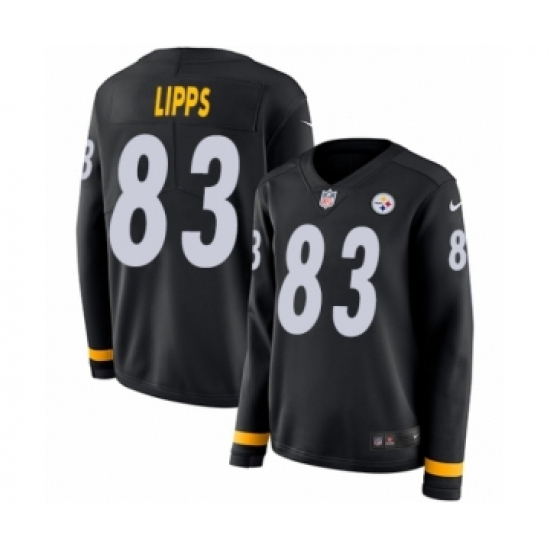 >Women's Nike Pittsburgh Steelers #83 Louis Lipps Limited Black Therma Long Sleeve NFL Jersey