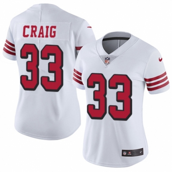 Women's Nike San Francisco 49ers #33 Roger Craig Limited White Rush Vapor Untouchable NFL Jersey