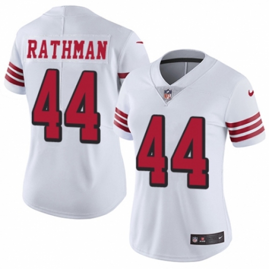 Women's Nike San Francisco 49ers #44 Tom Rathman Limited White Rush Vapor Untouchable NFL Jersey