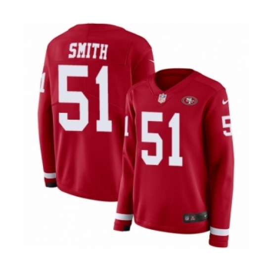 >Women's Nike San Francisco 49ers #51 Malcolm Smith Limited Red Therma Long Sleeve NFL Jersey