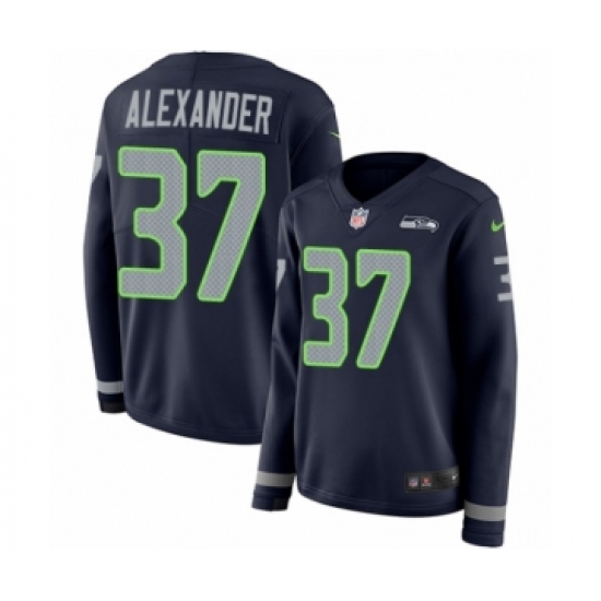Women's Nike Seattle Seahawks #37 Shaun Alexander Limited Navy Blue Therma Long Sleeve NFL Jersey