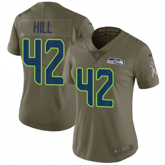 Home>NFL>Seattle Seahawks>Delano Hill>Women's Nike Seattle Seahawks #42 Delano Hill Limited Olive 2017 Salute to Service NFL Jersey