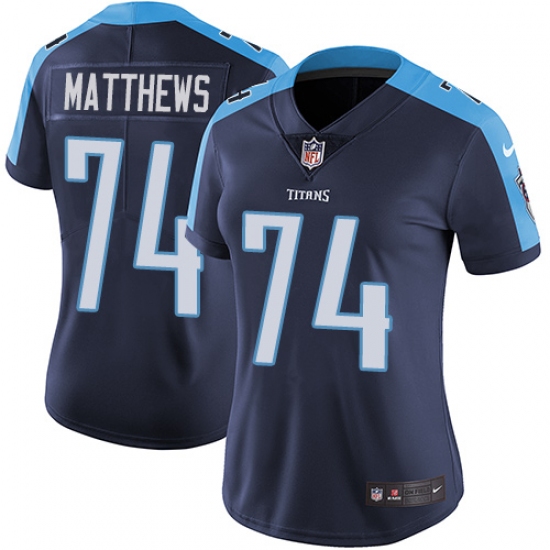 Home>NFL>Tennessee Titans>Bruce Matthews>Women's Nike Tennessee Titans #74 Bruce Matthews Navy Blue Alternate Vapor Untouchable Limited Player NFL Jersey