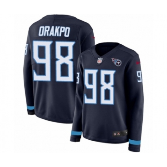 >Women's Nike Tennessee Titans #98 Brian Orakpo Limited Navy Blue Therma Long Sleeve NFL Jersey