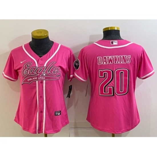 Women's Philadelphia Eagles #20 Brian Dawkins Pink With Patch Cool Base Stitched Baseball Jersey