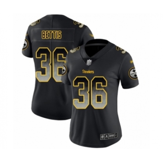 >Women's Pittsburgh Steelers #36 Jerome Bettis Limited Black Smoke Fashion Football Jersey