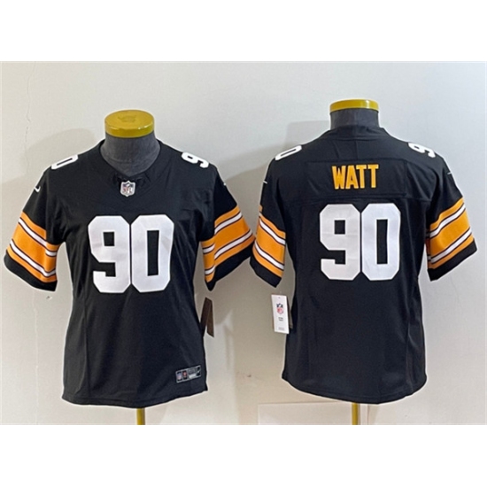 Women's Pittsburgh Steelers #90 T. J. Watt Black 2023 F.U.S.E. Stitched Jersey