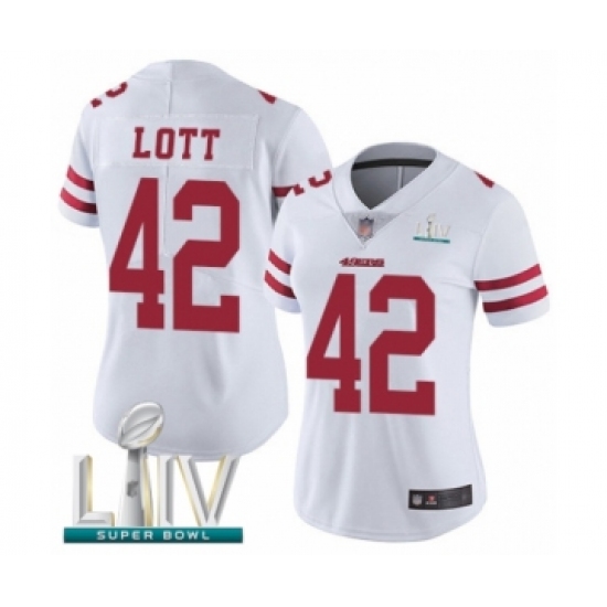 Women's San Francisco 49ers #42 Ronnie Lott White Vapor Untouchable Limited Player Super Bowl LIV Bound Football Jersey