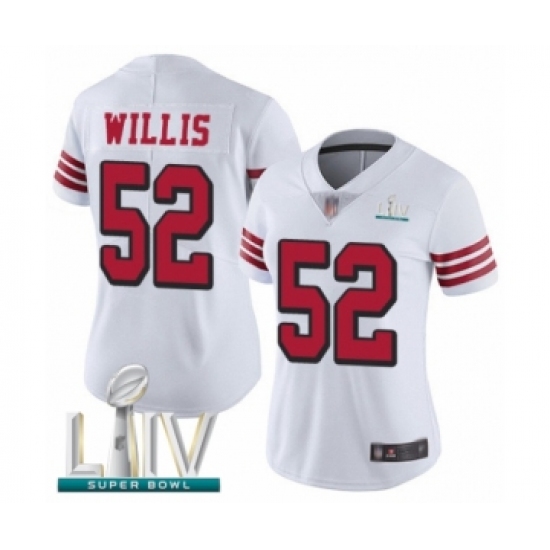 Women's San Francisco 49ers #52 Patrick Willis Limited White Rush Vapor Untouchable Super Bowl LIV Bound Football Jersey
