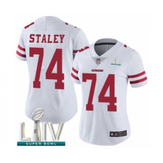 >Women's San Francisco 49ers #74 Joe Staley White Vapor Untouchable Limited Player Super Bowl LIV Bound Football Jersey