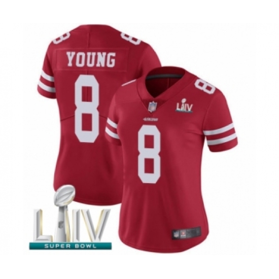 Women's San Francisco 49ers #8 Steve Young Red Team Color Vapor Untouchable Limited Player Super Bowl LIV Bound Football Jersey